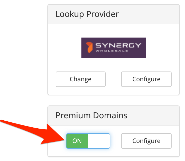 Now that Synergy Wholesale is the lookup provider, you need to enable premium domains for WHMCS. This is done by toggling the the "Premium Domains" option found underneath Lookup Provider configuration.
