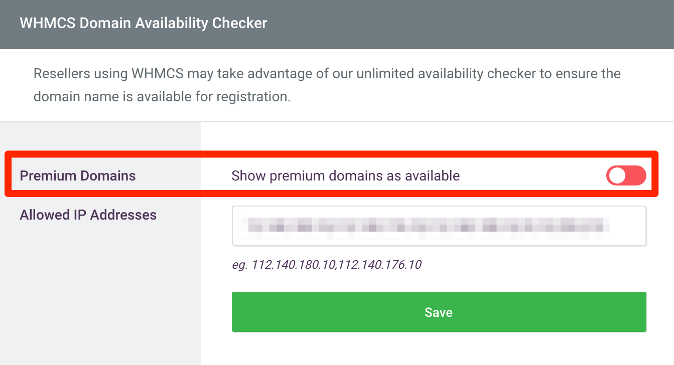 When enabled, it ensures that any call to "checkDomain", or "bulkCheckDomain" will return availability and pricing for premium domain names.