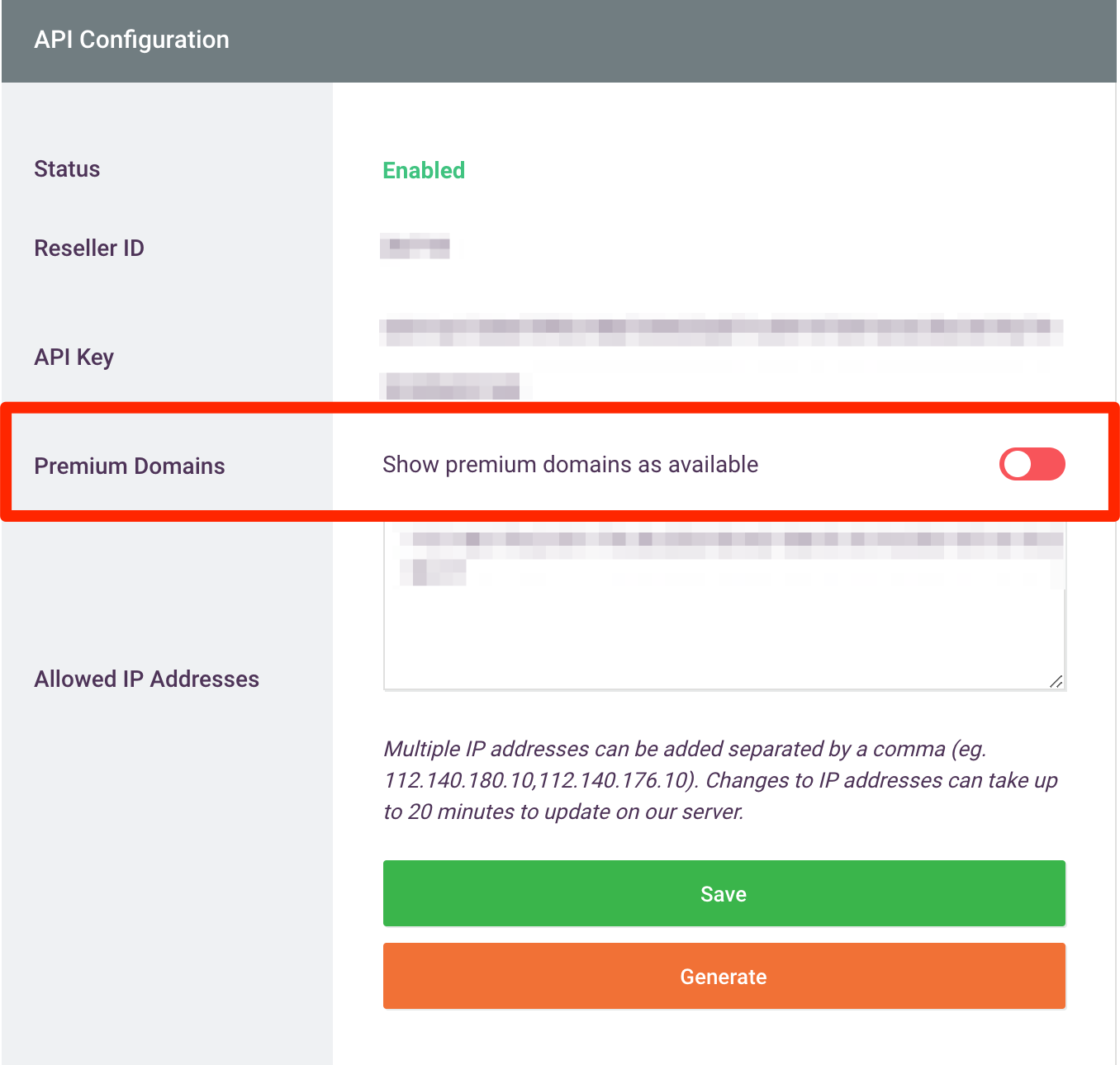- The IP Address whitelist is used to determine whether to use this setting. However, in the unlikely circumstance two partners have the same IP Address whitelisted and only one has premium domains enabled; premium names will be reported as "Available" for everyone.