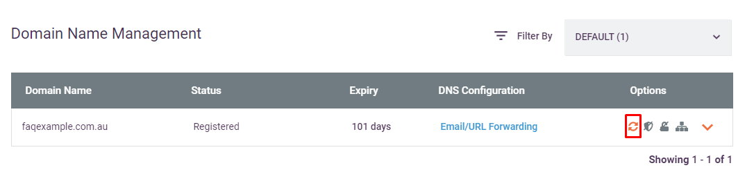 - Toggle off the auto-renew icon located under the options section of your domain name.