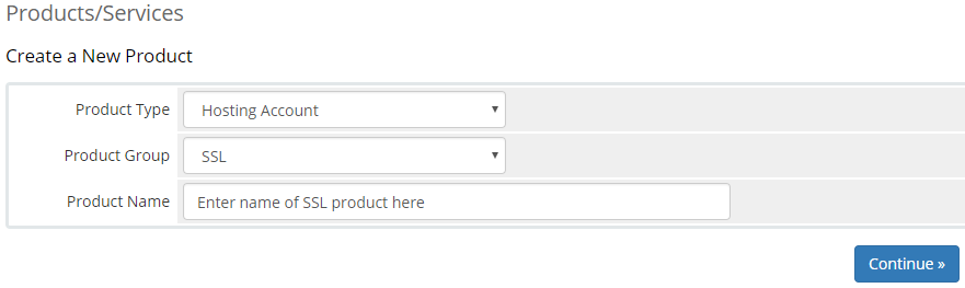 After you have uploaded the unzipped folder to the Modules > Servers directory in your WHMCS installation, you must create or re-configure any existing SSL products you have already configured. This will ensure that future orders and processed through the new module. To do this head to your WHMCS Admin Area and from the toolbar at the top go through to the following options: Hover over the Settings icon (spanner icon) at the top right of WHMCS >> System Settings >> Click on Products Services On this page depending if you are setting this up as new or updating from an old module follow the appropriate steps outlined below: If upgrading from an older version of our module, please refer to the following: Upgrading from an old version of the SSL ModuleIf getting started with our SSL module for the first time