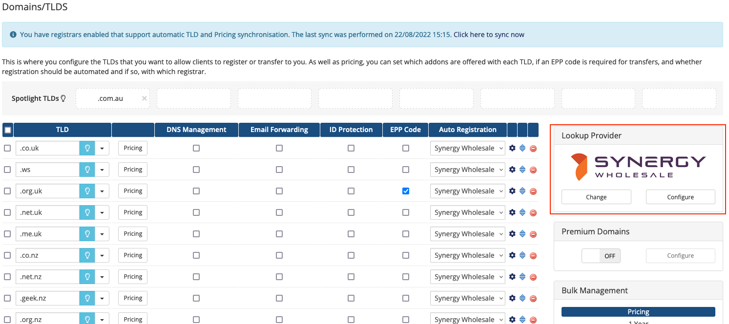 If you are using using an up to date installation of WHMCS with our official domain module, you may be required to make a small change to your configuration if you are not using it as your lookup provider, but it should hopefully be as painless as clicking a few buttons.