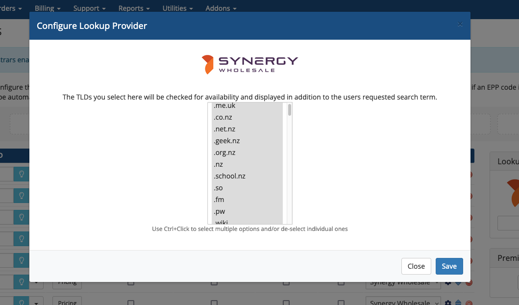 You'll be provided with a list of TLDs you wish to perform lookups on, select which ones you want and click Save.